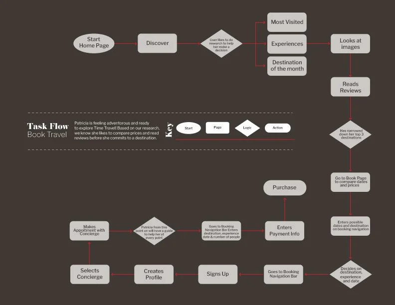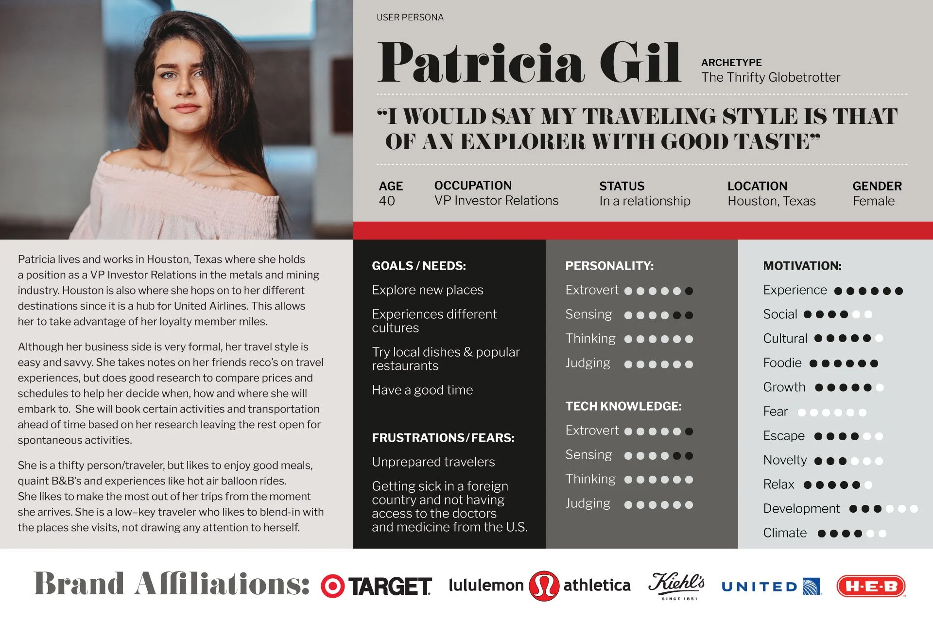 Seeing the project unfold was fascinating. I started out by conducting research interviews with 3 seasoned travelers. Examples of my inquiry include how each participant planned and booked travel, blogs and magazines they reach for, activities they look forward to, traveling style, to how they decide the length of their vacation.
