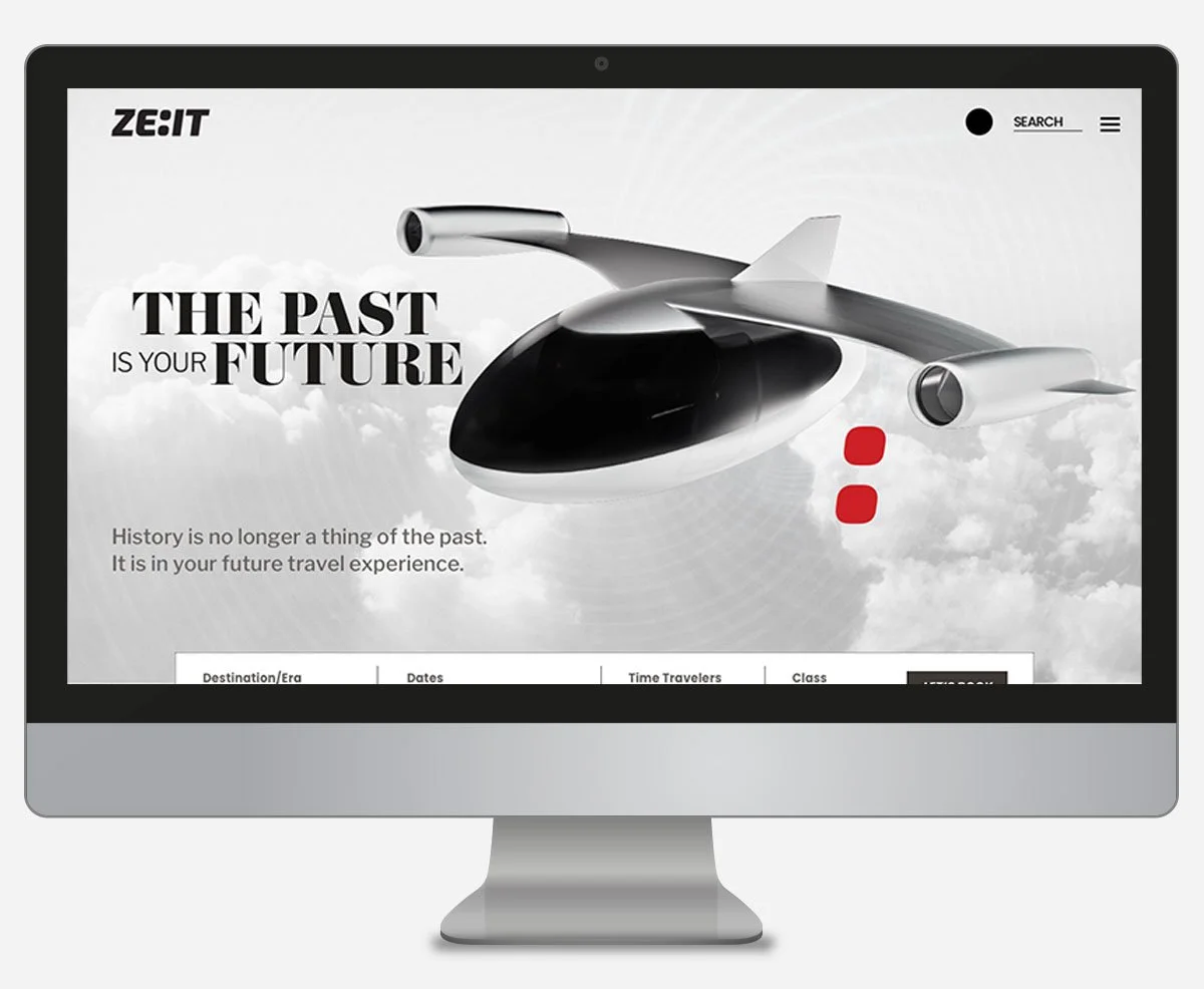 I visualized impactful black and white imagery which would draw the user to further explore the site; speaking to the elegance and experience of the product. The past is in black and white, the present is in color. Using unique typography, like high-end luxury brands in Vogue magazine allow for a tailored look and feel. The user, when navigating Zeit will immediately feel transported to a different space in time.