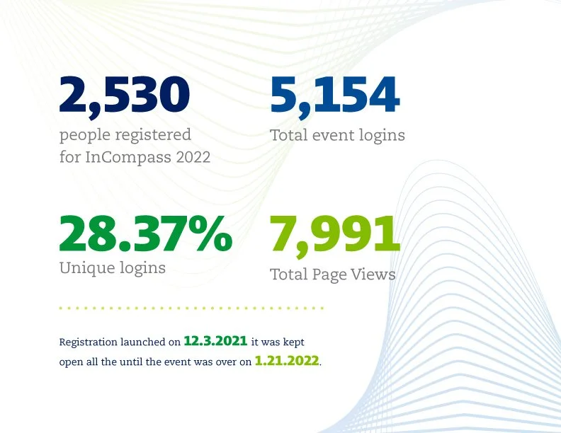 I was very excited to get this real–life project. I was able to apply the new knowledge and skills from design lab. The turn-around was incredibly fast. I had no bandwidth to do all the research steps I now value so much. I was also working a bit in the dark by not having graphic assets at hand. However, the project got done, and it served its purpose. The stakeholders were very happy with the result. InCompass had more than 800 in-person attendees and 1,000+ enjoyed the event from their comfort of their homes. All of whom got registered through this website. It feels good to make a positive contribution to a company that offers so much good to its employees and communities.
