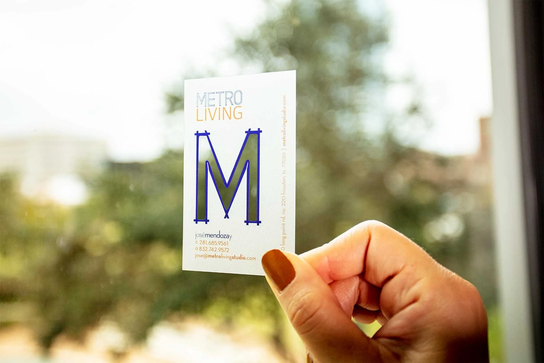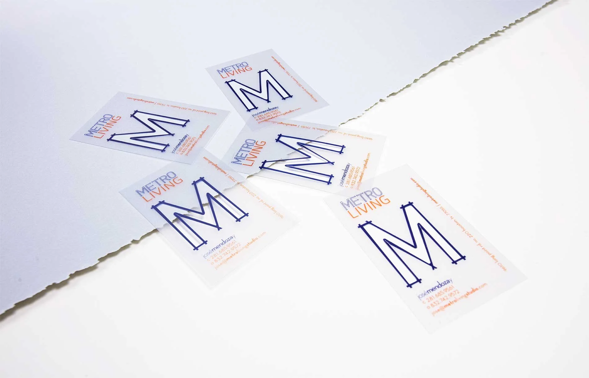 Metro Living – An architecture design studio that brings sketches to life! Inspired by this, we developed a logo resembling the sketches of the head architect. The brand identity also plays off the concept of bringing your vision to life by cutting out the space of the “M” allowing users to see their vision through it.